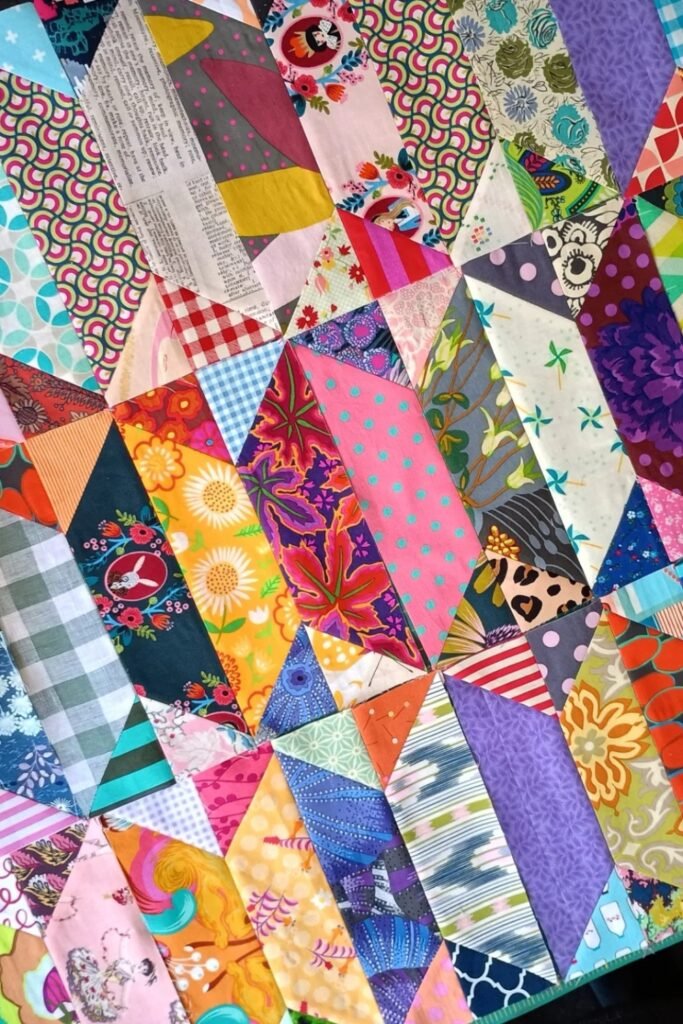 When angled cuts guide the whole surface with vivid direction and contrast, random fabric scraps turn into bold movement.