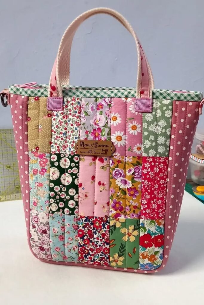 This bag has a robust structure thanks to the soft patchwork blocks, but it still feels light, flexible, and comfortable to carry every day.