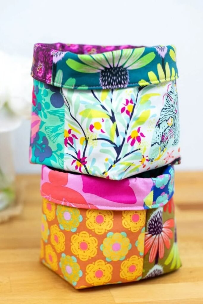 Bright patchwork panels repurpose excess cotton into neat storage that instantly adds color to desks, shelves, and creative spaces.