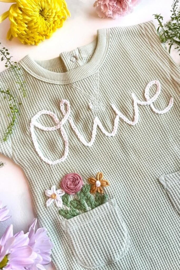 Personal embroidery turns basic baby clothes into keepsakes that parents preserve long after their kids have outgrown them.