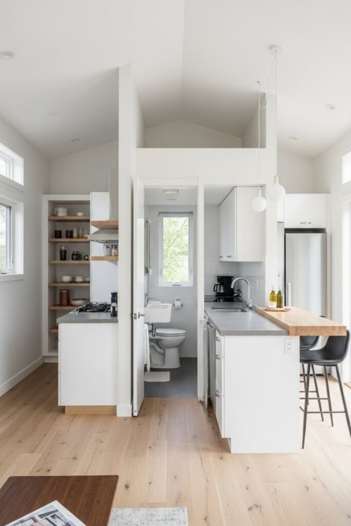 This layout reduces visual barriers, improves light distribution, and keeps the home feeling airy, which is crucial when working with a compact footprint.