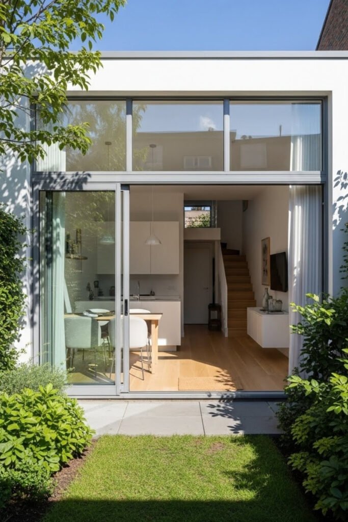 This layout works well on compact urban lots and helps the house feel more like a full-sized home despite limited ground space.