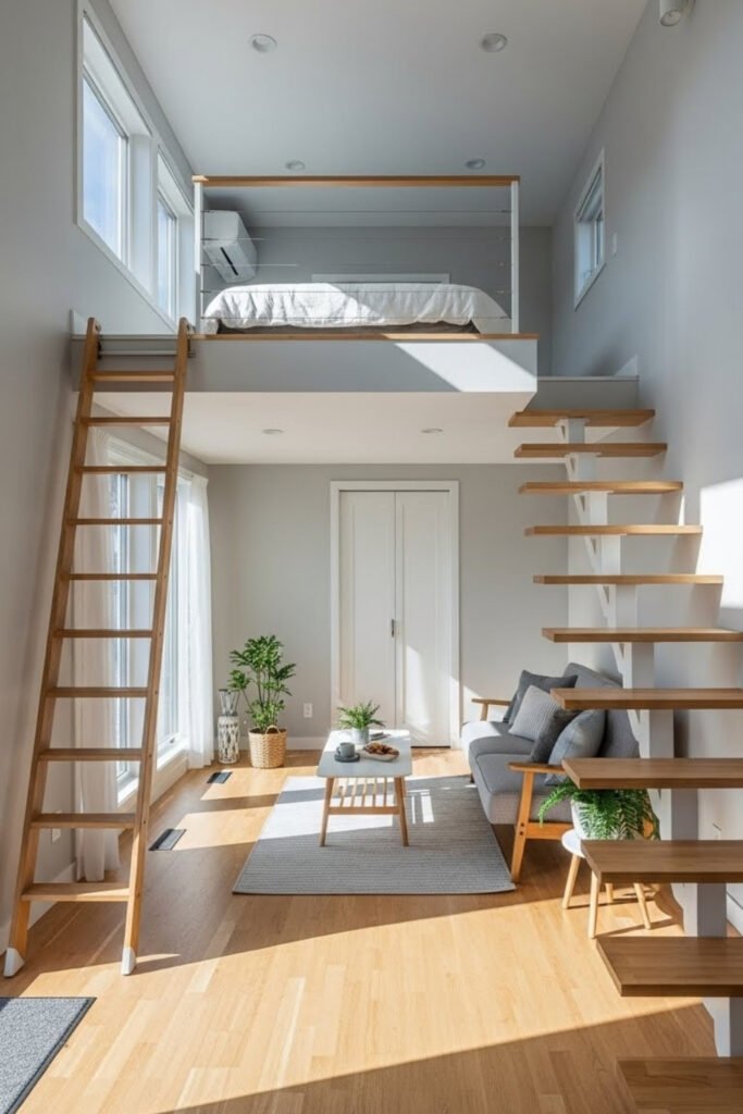A loft-focused small house uses vertical space to add a sleeping or work area above the main living zone. This keeps the floor open and flexible while increasing usable square footage.