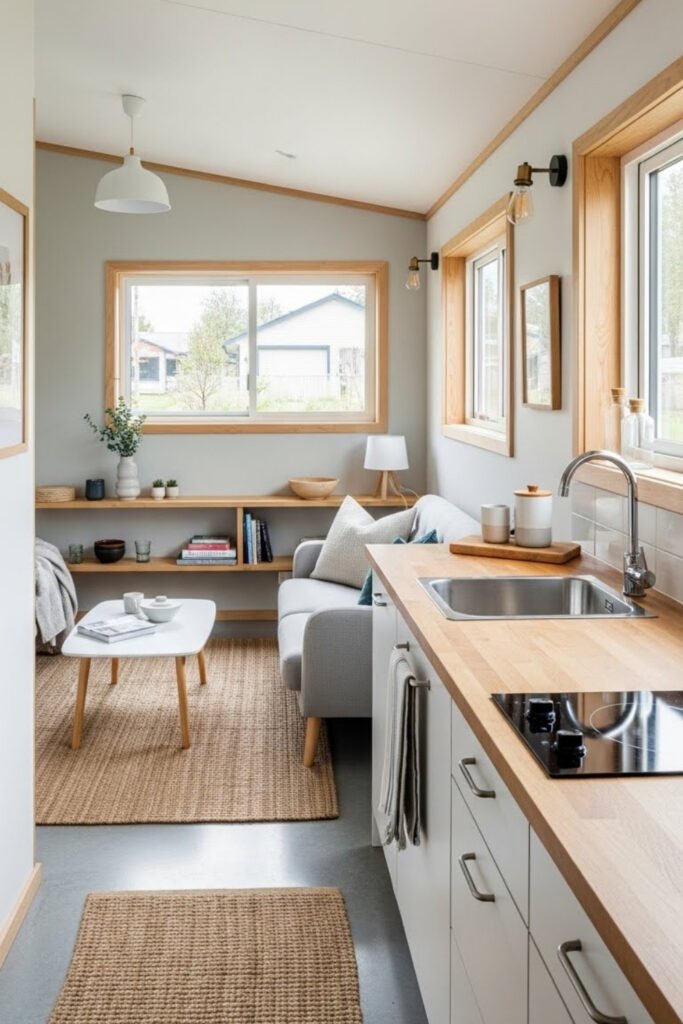Shared storage, and multi-use living zones make it practical for families without feeling crowded. This idea prioritizes function and comfort over excess square footage.