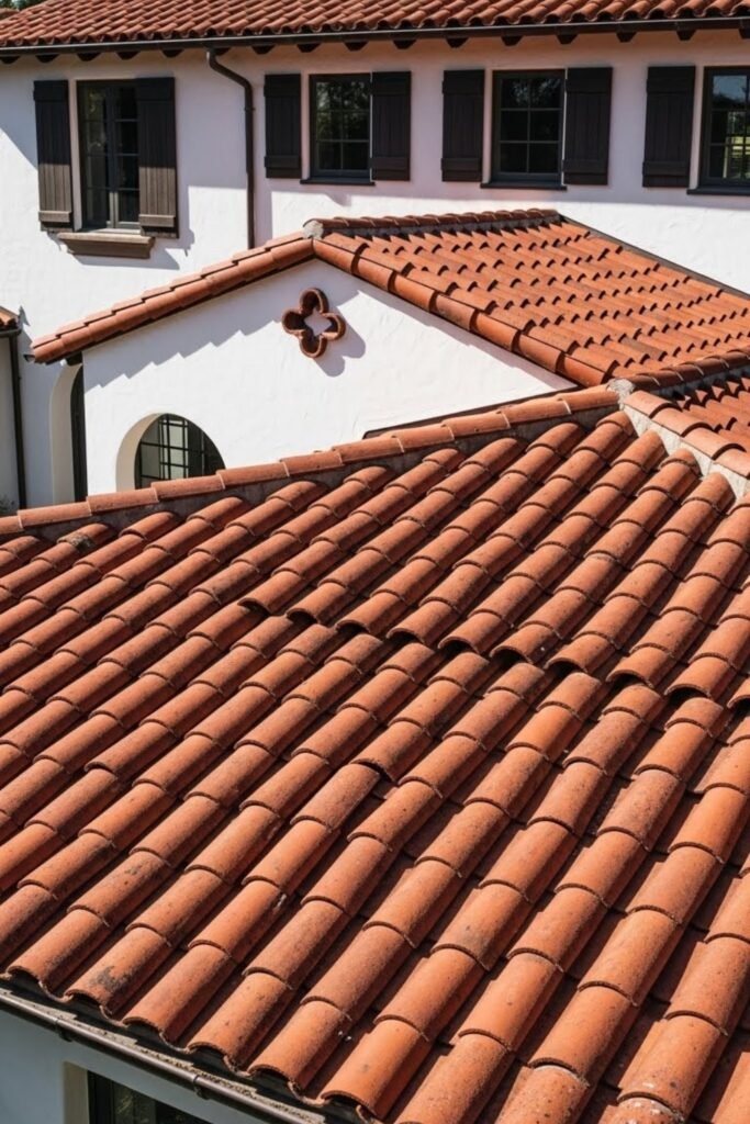 Clay tile roofs are a signature feature of Spanish-style homes. Their curved terracotta tiles help reduce heat buildup by allowing air circulation beneath them.