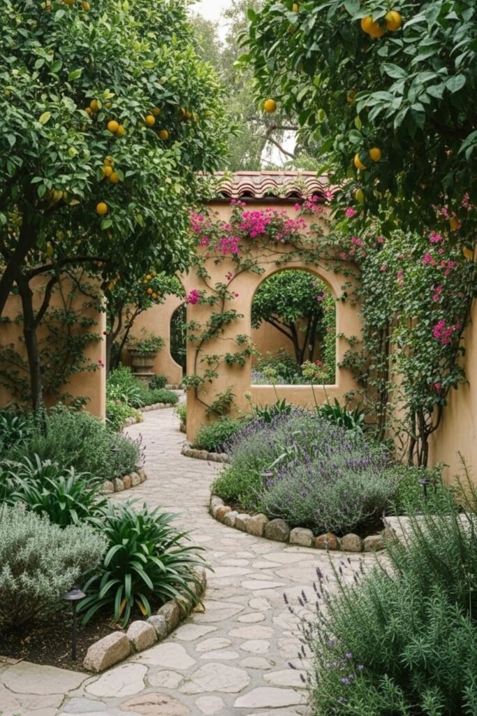 Plants like citrus trees, olive trees, or climbing vines thrive in this setup. The courtyard becomes a peaceful retreat that connects daily living with the outdoors.