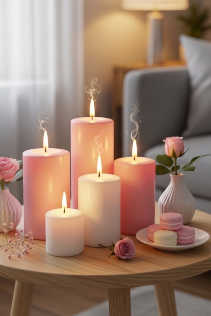 Add a light strawberry scent using candles or wax melts placed away from food. Keep it subtle so it enhances the mood without overpowering the room.