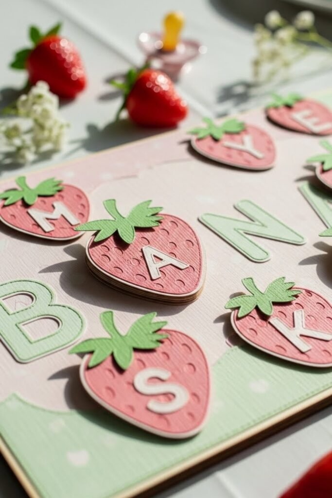 Create a simple board with strawberry cutouts hiding the baby’s name.