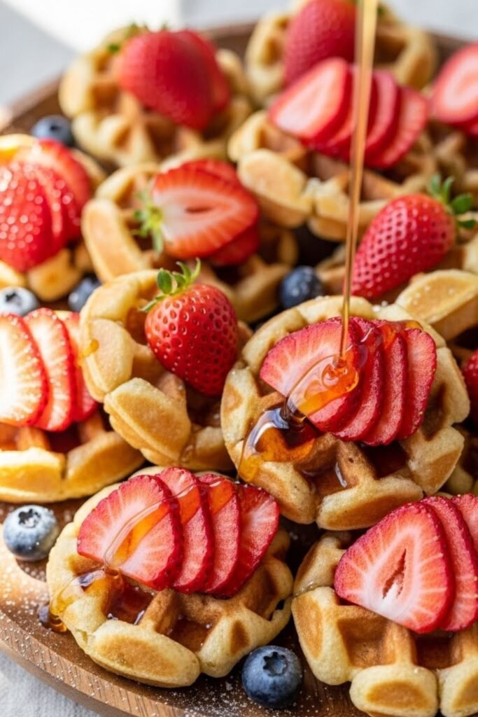 Offer mini waffles topped with fresh strawberries and a light drizzle of syrup.