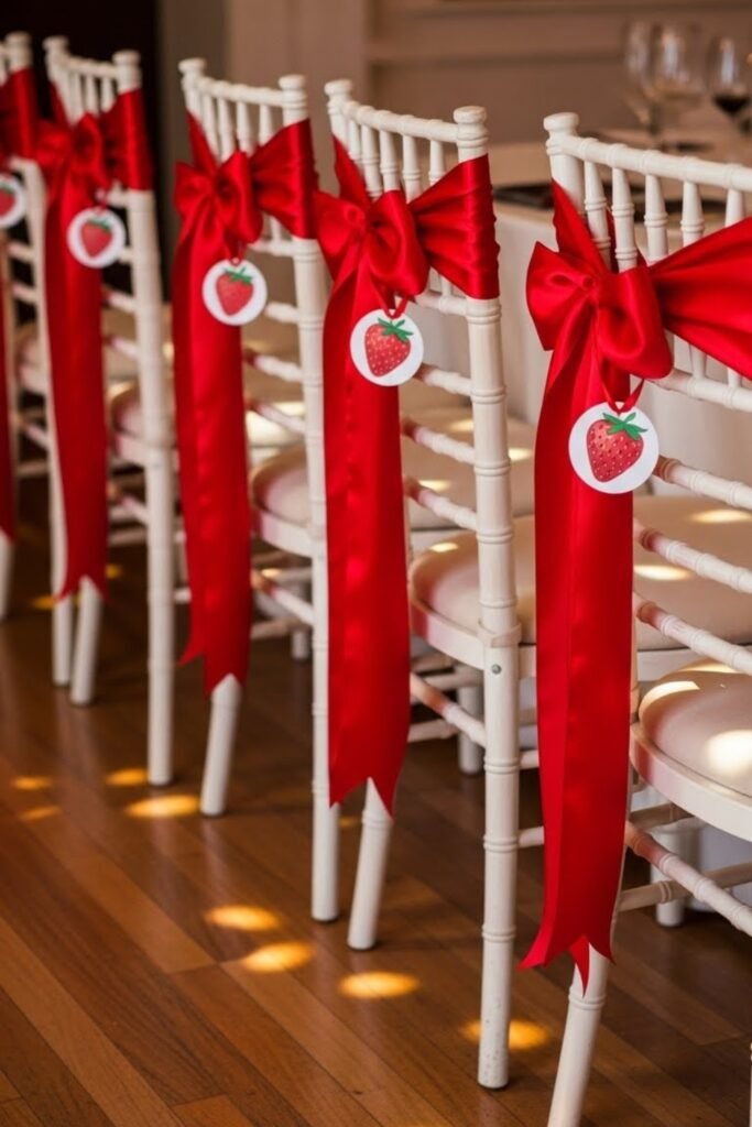 Tie small strawberry tags or red ribbons to the backs of chairs.