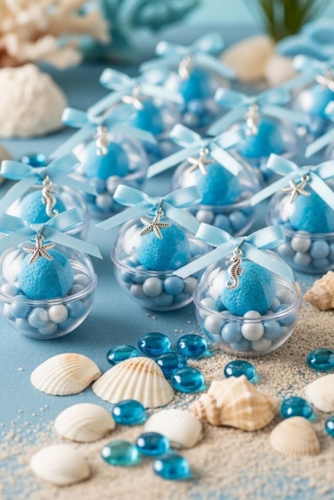 This idea ties directly into the underwater theme while remaining playful and practical. It’s a lightweight, easy-to-carry favor that guests of all ages will appreciate.