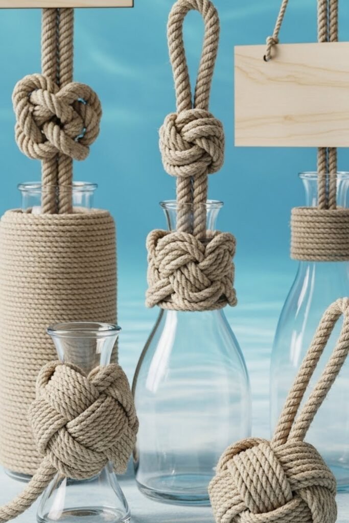 Incorporate decorative rope knots into the décor for subtle ocean detail. Wrap knotted rope around vases, signposts, or table edges.