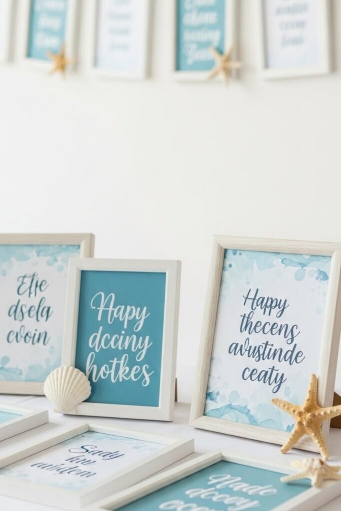 Display short ocean-inspired quotes on small signs, table cards, or wall prints. Use soft fonts and calming colors to match the theme.