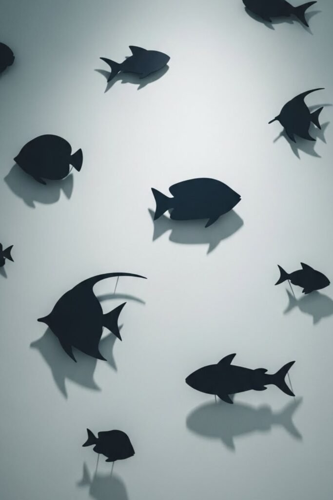Use simple fish silhouettes as wall decals, hanging cutouts, or backdrop accents. Keep the shapes minimal and colors muted for a clean look.