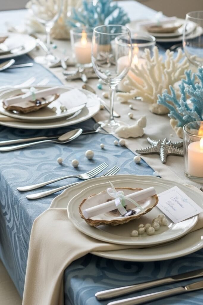 This idea adds a refined under-the-sea touch while helping guests find their seats easily. It works beautifully for table settings or favor tables.