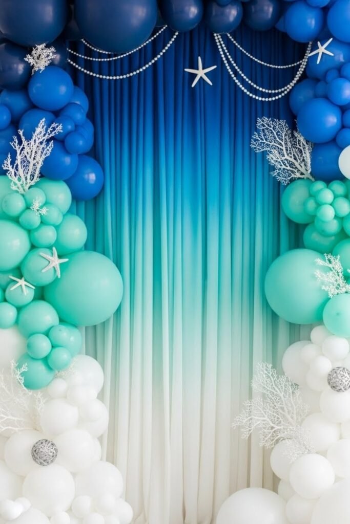Mix balloon sizes to create depth, mimicking rising bubbles from the sea floor. Place it behind the gift table or dessert area for a playful but elegant under-the-sea statement.
