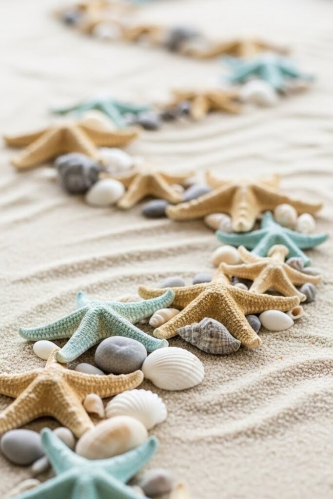 Create a subtle pathway using starfish accents leading guests toward the main setup or seating area. Place faux starfish along a table runner, entry walkway, or gift table edge.