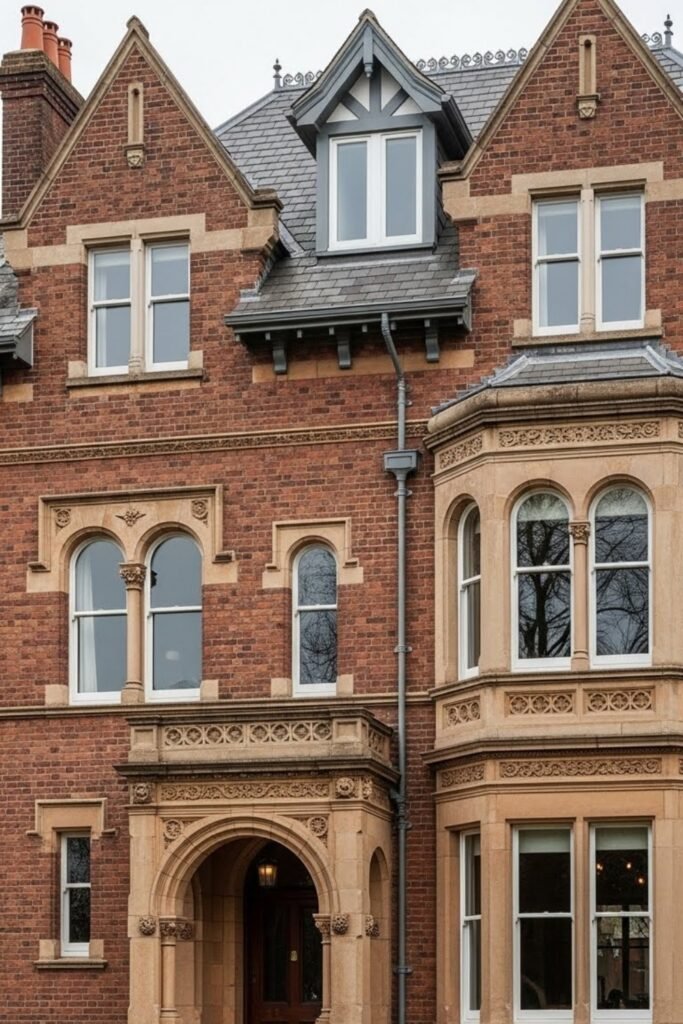 Tall chimneys are a striking vertical feature in Victorian homes. Often finished with decorative brickwork or stone caps, they add character even when not in use.