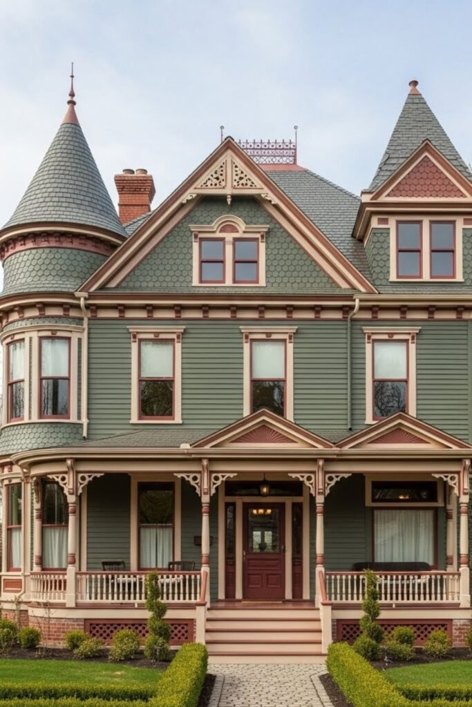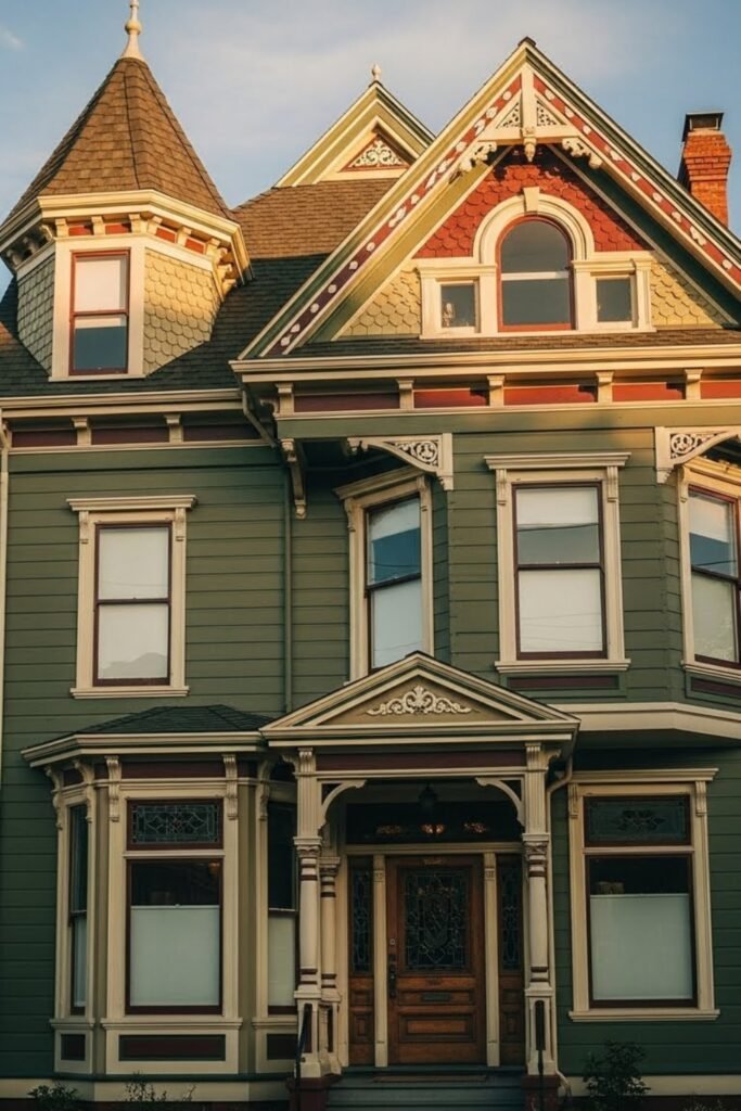 Historic color palettes define the true Victorian look. Deep greens, muted reds, soft creams, and warm browns enhance architectural details without overpowering them.