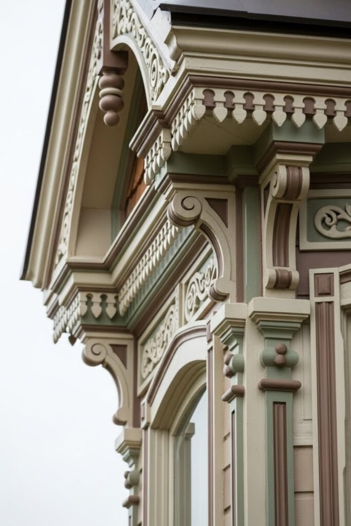 Ornate trim is a defining detail of Victorian architecture. Intricate woodwork around windows, doors, and roof edges adds richness and craftsmanship.