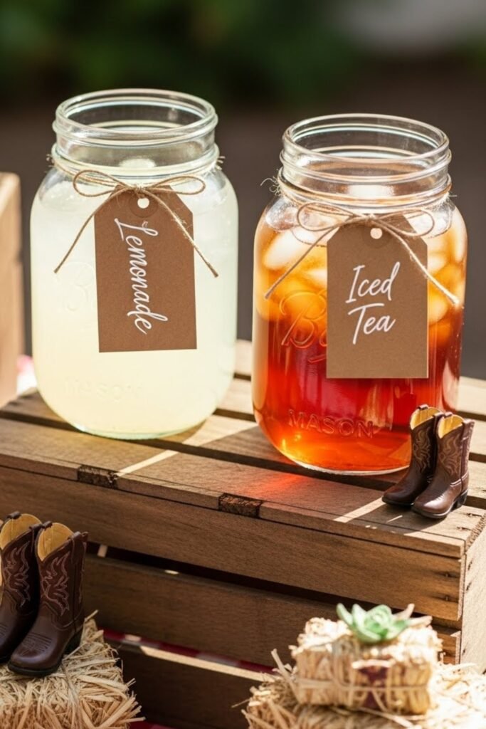 This idea adds western charm to the drink station while keeping things practical and easy for guests to grab.
