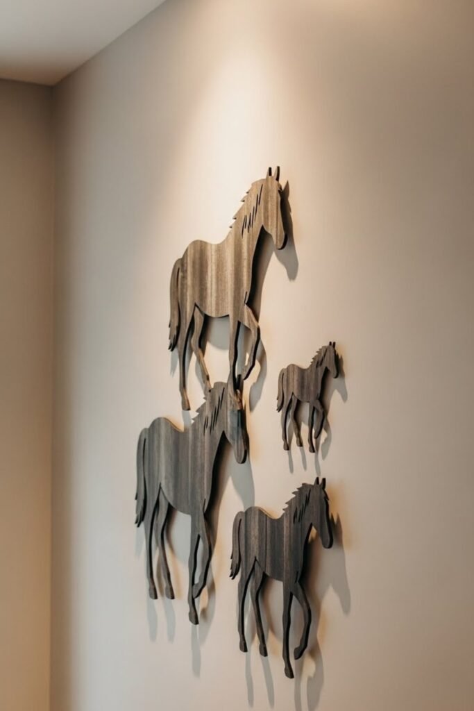 Decorate walls or tables with simple horse silhouette cutouts in wood, acrylic, or matte cardstock. Keep the design clean and minimal so it feels elegant rather than playful.