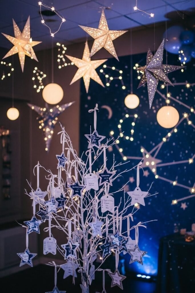 Design the shower around wishing stars, constellations, and glowing accents. Use star-shaped decor, night-sky backdrops, and handwritten wish tags for guests.