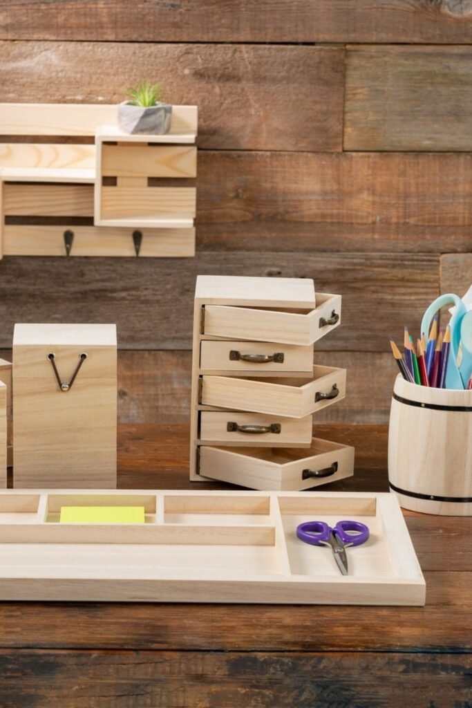 Position these organizers on busy desks or craft tables where practical wooden storage improves workflow while keeping surfaces tidy and comfortable daily.