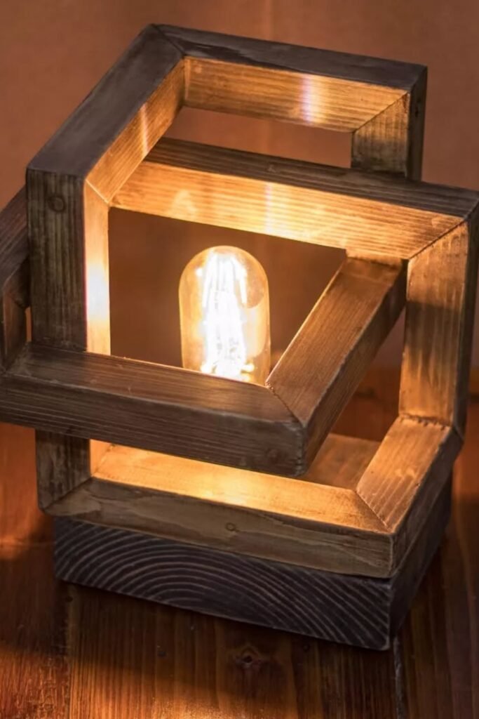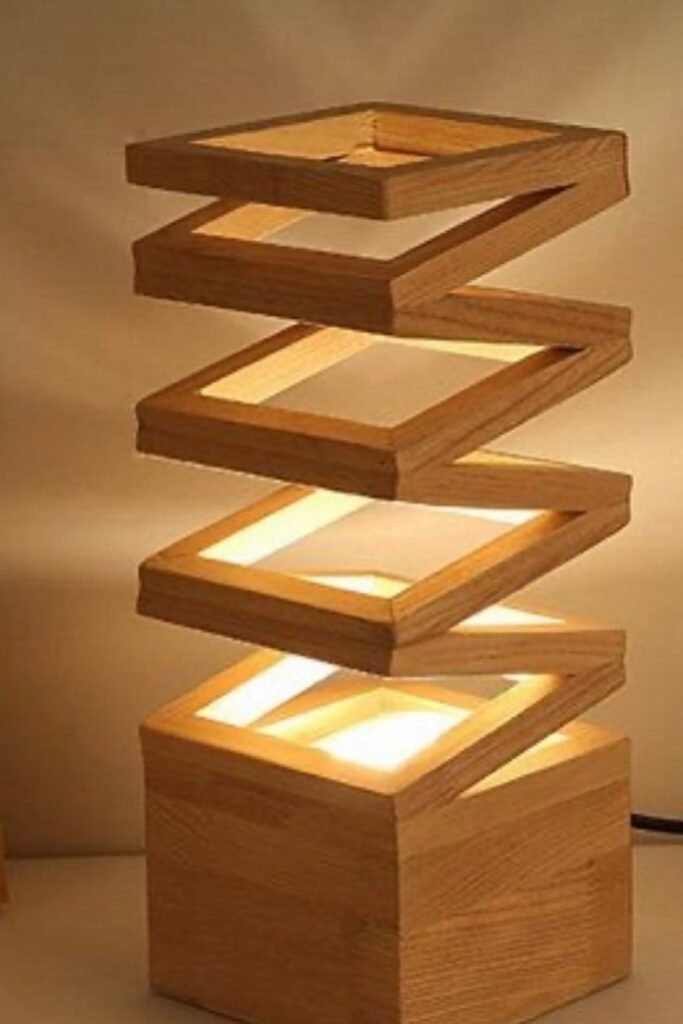 When you want something bold, stacking square wooden frames at shifted angles creates this layered cube lamp that throws dramatic shadows around rooms.