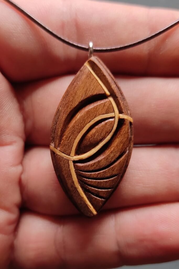 Cut the shape carefully, remove thin channels with precision, and sand every groove lightly so the pendant feels smooth while retaining visual detail.
