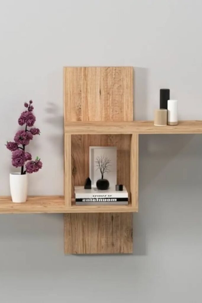 Use this design in living rooms or hallways to display plants, books, and small art pieces while keeping the wall visually light and spacious.