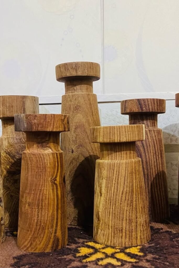 Letting raw edges stay visible on turned wooden vases brings personality and movement, especially when each piece highlights knots and natural grain drama.