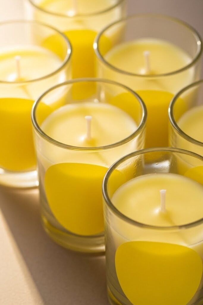 Give guests lemon-scented candles in small glass jars with yellow labels. Keep the design minimal so it feels thoughtful rather than themed.