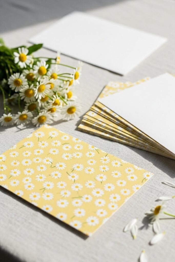 Prepare daisy-printed or soft yellow thank-you cards and display them near the exit. Guests can write notes to the parents-to-be during the event.
